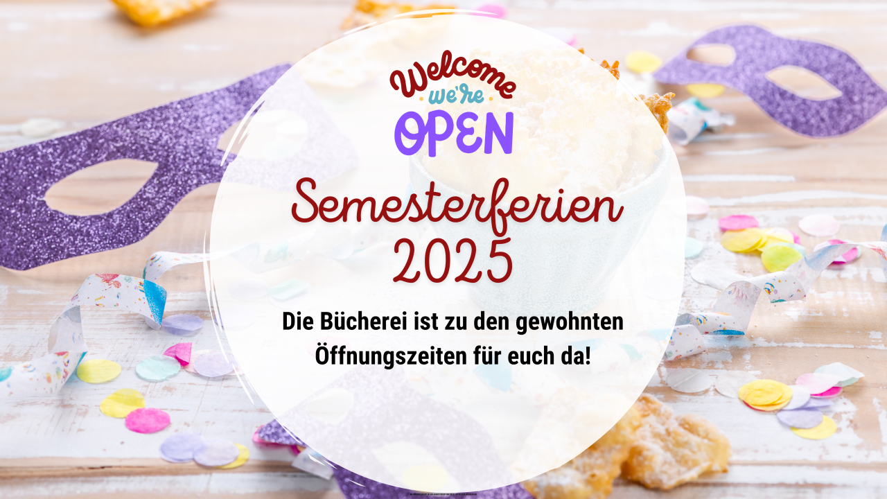 Die Bücherei ist zu den gewohnten Öffnungszeiten für euch da!